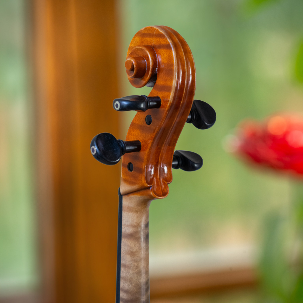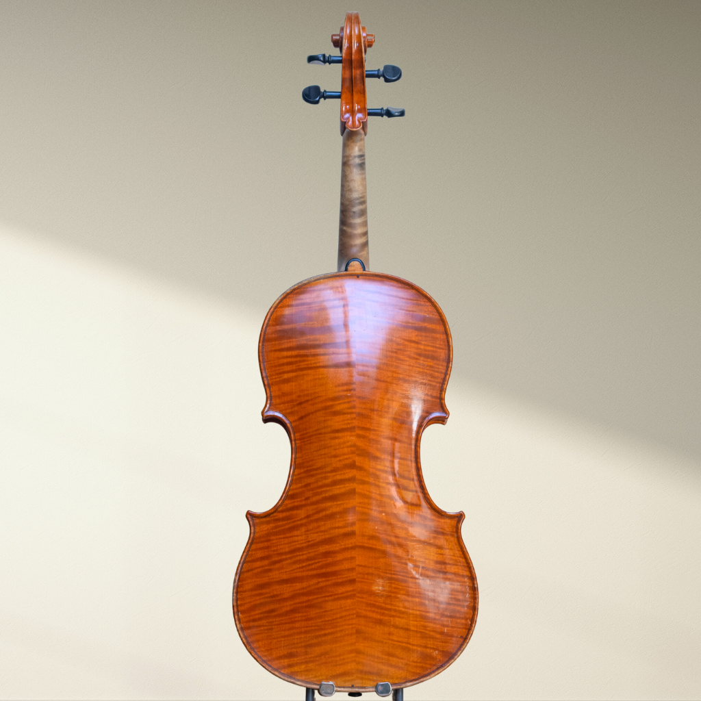 Origen y Autenticidad: Esta viola fue adquirida en Alemania y es una obra del renombrado luthier František Zucker, originario de Luby, Checoslovaquia. La autenticidad del instrumento está garantizada por la etiqueta interior marcada con el nombre ‘Zucker’.